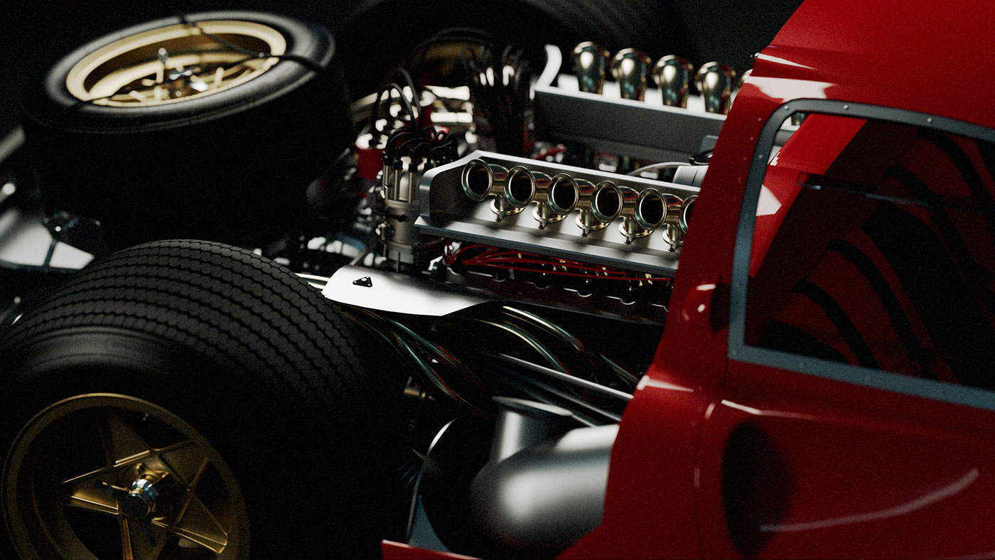 Beneath the rear clamshell lies the centerpiece of the 330 P4: a 4.0L V12 engine, meticulously crafted and visually striking. The engine bay, revealed with the hood raised, showcases an uncompromising dedication to performance and engineering detail. Clean lines, mechanical symmetry, and purposeful design all point to a different era of innovation—where engines were not only built to win, but also built to last. These images capture the machine’s mechanical soul, where Ferrari’s relentless pursuit of excellence is on full display.